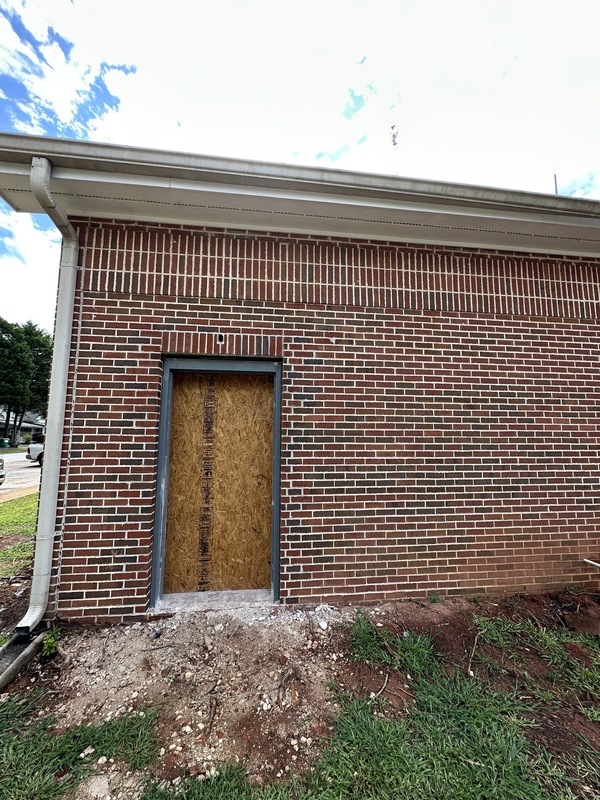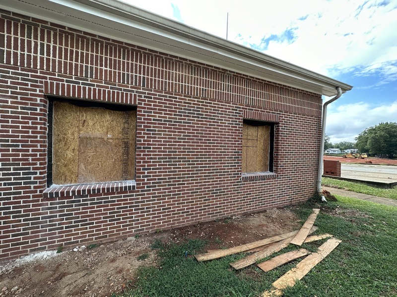 Masonry work around new windows has been completed. Awaiting window installation.