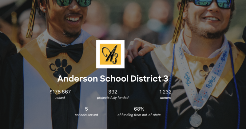 Teachers in Anderson School District 3 have raised $178,000 and completed over 390 projects on DonorsChoose. These projects vary from books to laptops and other tools to enhance the learning environment and support student success.